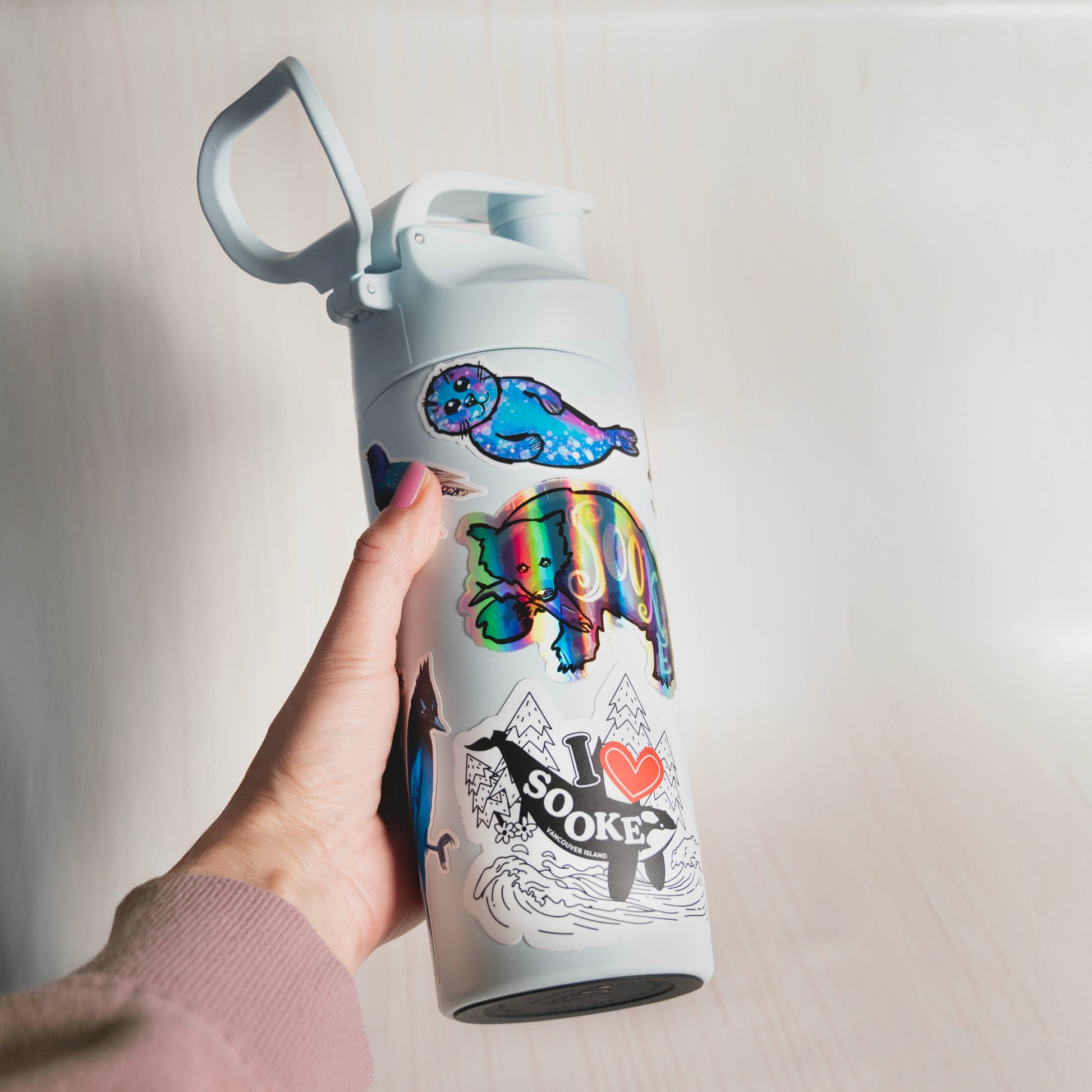 Printed from Jen’s original West Coast Octopus artwork, it’s perfect for decorating water bottles, laptops, or cars, and built to resist outdoor wear so the colours stay vibrant.
